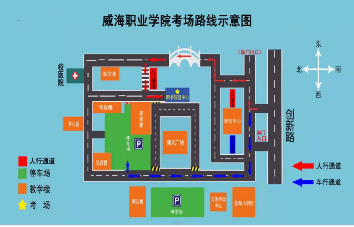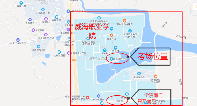 国家统一法律职业资格考试威海职业学院考场路线示意图