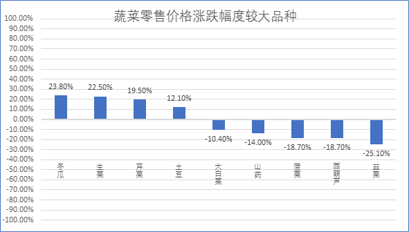 一、蔬菜市场价格稳中有降 365平台是什么_365bet365游戏_bt365体育官网育上周,根据商务部生活必需品市场监测系统平台数据显示,重点监测的30种蔬菜“10涨12跌8平”,蔬菜零售均价环比上周下降2.1%。其中,冬瓜、生菜、芹菜、土豆4个品种涨幅超过10%;大白菜、山药、菠菜、西葫芦、韭菜5个品种跌幅超过10%; 西兰花、圆白菜、菜花、生姜、莲藕、苦瓜、豆角、白萝卜8个品种蔬菜价格环比基本持平。近期随着气温的回升,利于蔬菜的生长,市场上蔬菜供应充足,蔬菜价格整体呈现下行。预计后期随着气温的进一步回升,蔬菜价格将保持平稳态势运行。