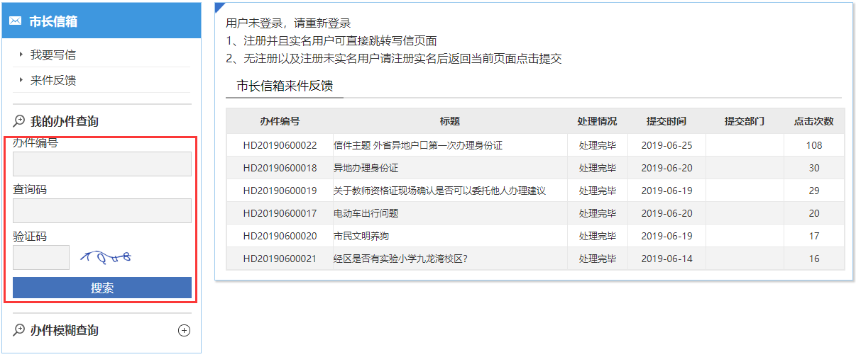 可以根据写信后的办件编号和查询码进行查询。也可以进行关键字查询已经公开的信件。