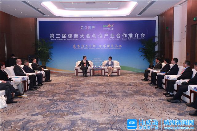 威海新闻网讯 3月28日,我市在济南举行第三届儒商大会威海产业合作推介会,借助儒商大会平台,共叙友情、共商合作、共谋发展。中青旅控股股份有限公司党委副书记、副董事长、总裁王思联,中国通用技术(集团)控股有限责任公司党组成员、副总经理周明春,格美集团董事长、上海市威海商会名誉会长徐曙光,市委副书记、市长孔凡萍,副市长邓勇、徐明出席活动,孔凡萍致辞。